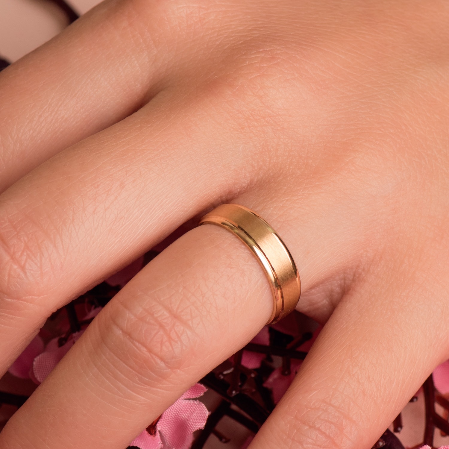 18K ALIANZA ORO AMARILLO MATE Y BRILLO. ANCHO: 5 MM