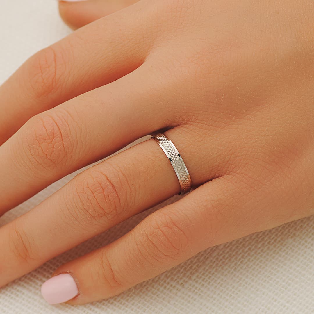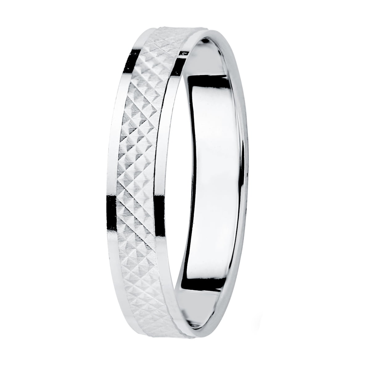 ALIANZA ORO BLANCO TALLADA Y BORDES EN BRILLO. 3,5 MM.