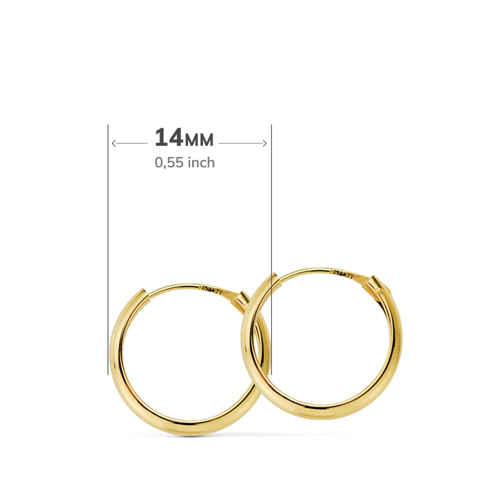 18K AROS ORO AMARILLO MEDIA CAÑA LISOS LIGEROS 14X2 MM