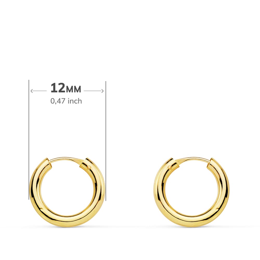 18K AROS ORO AMARILLO REDONDOS LISOS LIGEROS 12X2 MM