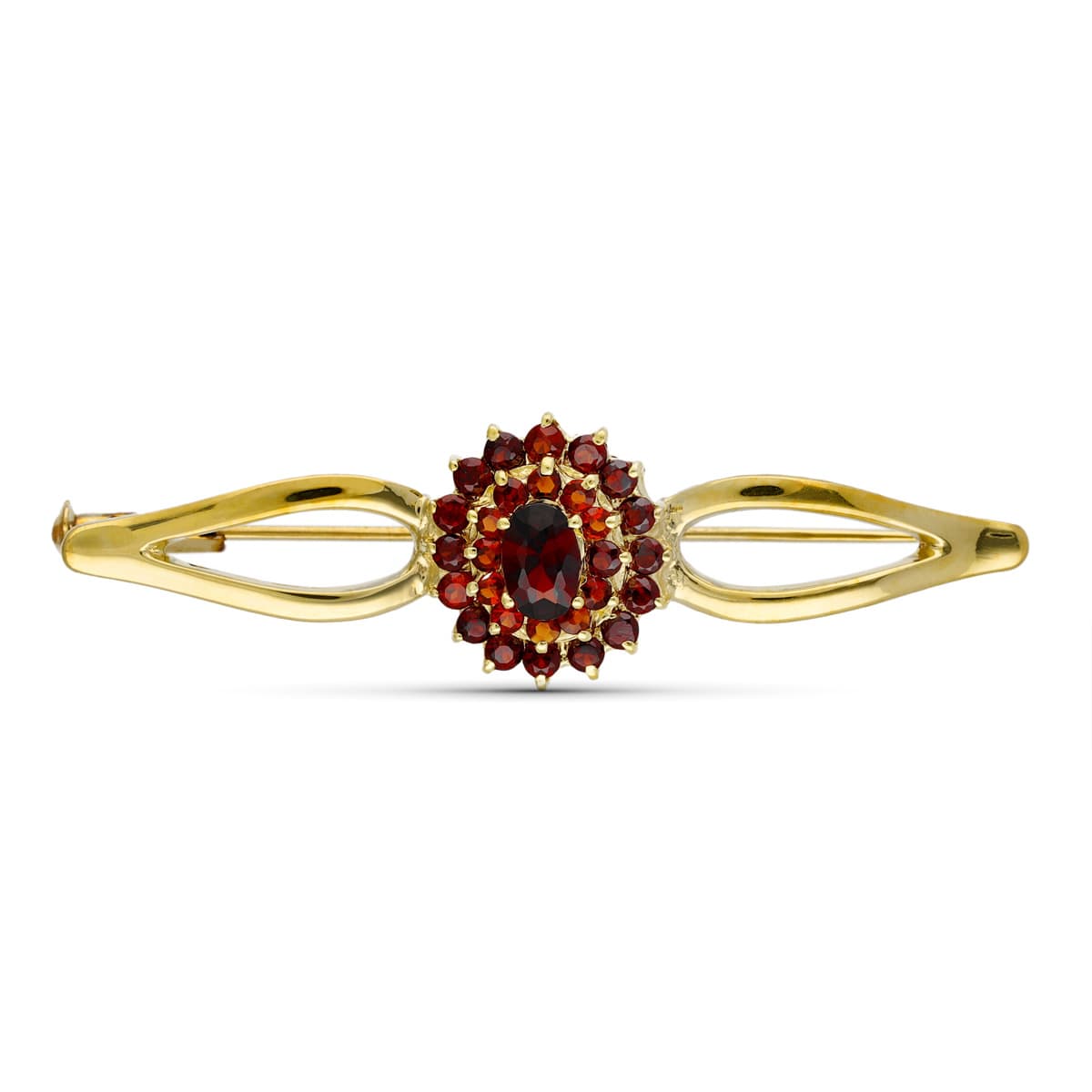18K BROCHE ORO AMARILLO CUAJO GRANATE 50X15 MM