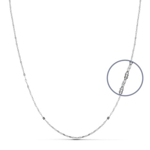 18K CADENA MACIZA ORO BLANCO ESLABONES PLANOS TALLADOS 1.5 MM 40 CM