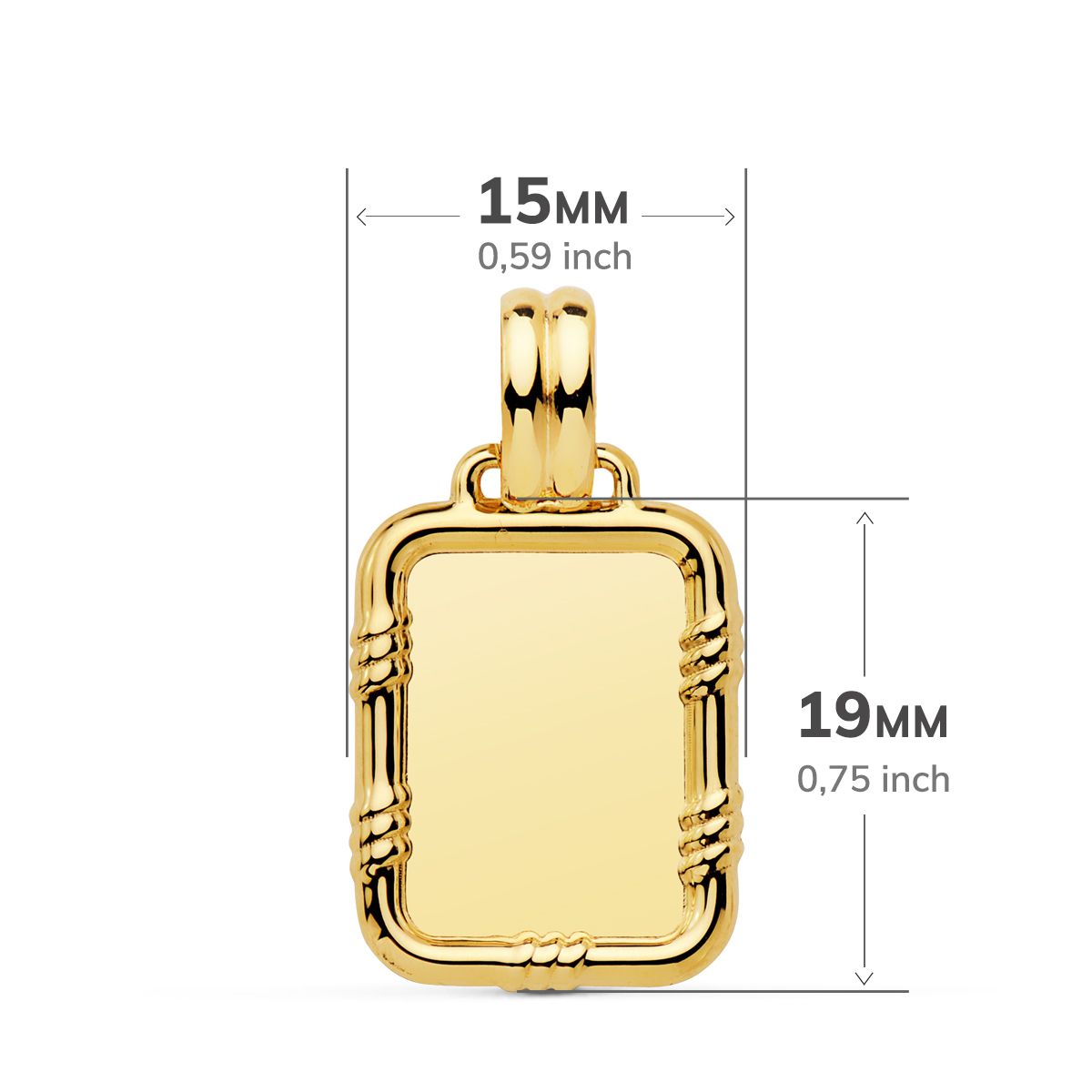 18K CHAPA BRILLO CON BORDE 19X15 MM