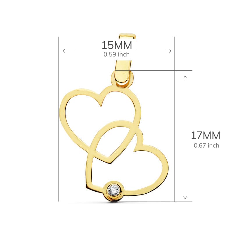 18K COLGANTE 2 CORAZONES 17X15 MM