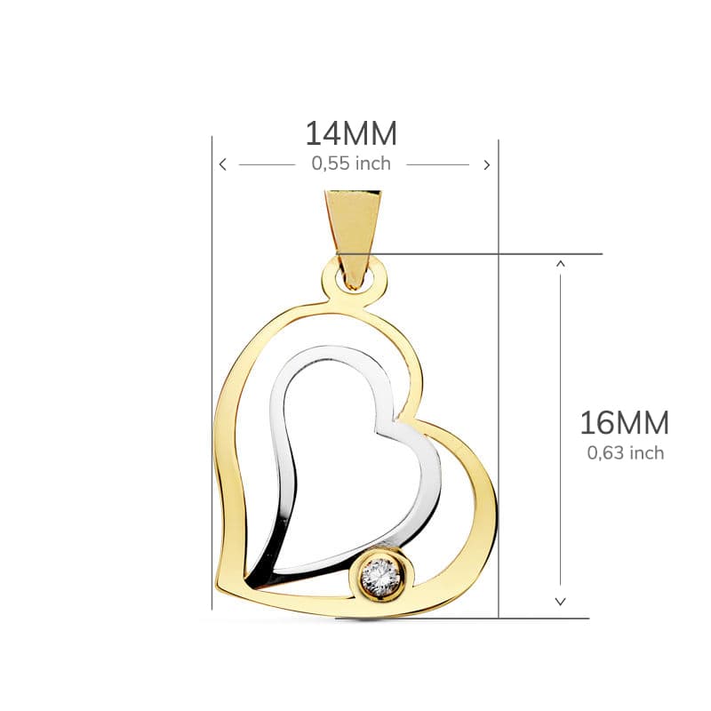 18K COLGANTE CORAZON BICOLOR 16X14 MM