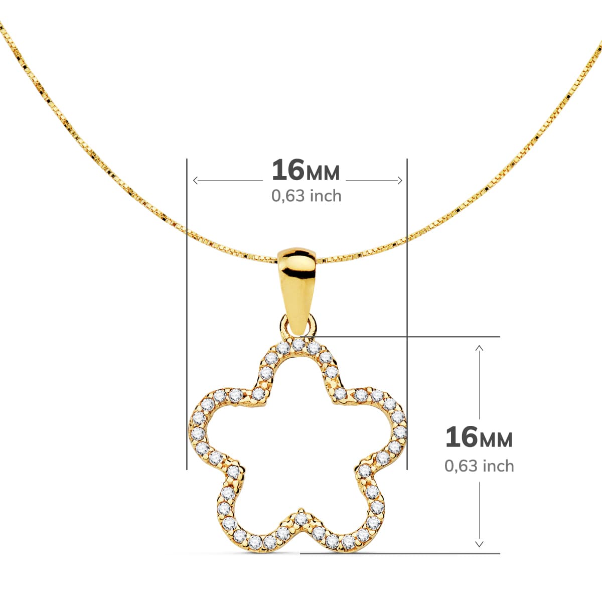 18K COLGANTE ESTRELLA CIRCONITAS 16X16 MM CADENA VENECIANA 42+3 CM