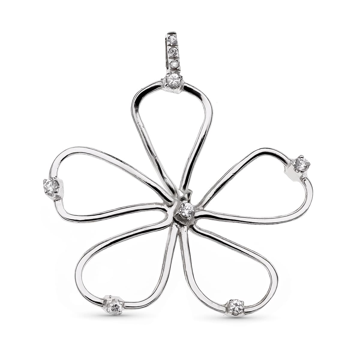 18K COLGANTE ORO BLANCO FLOR. 35 X 38 MM.