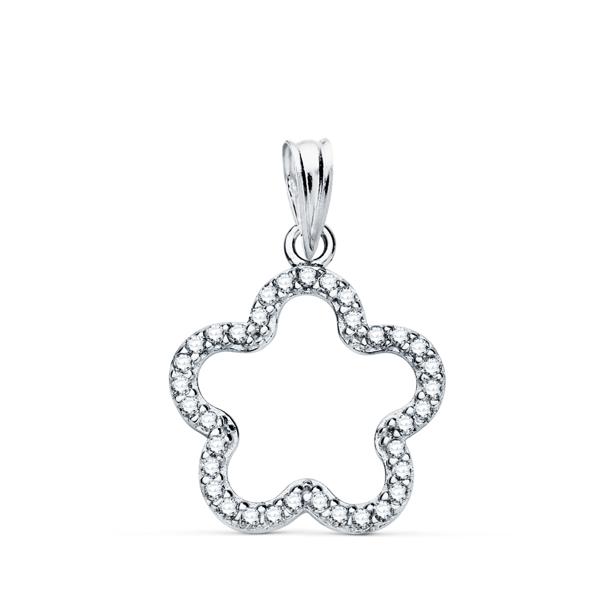 18K COLGANTE ORO BLANCO FLOR CIRCONITAS 16 X 16 MM