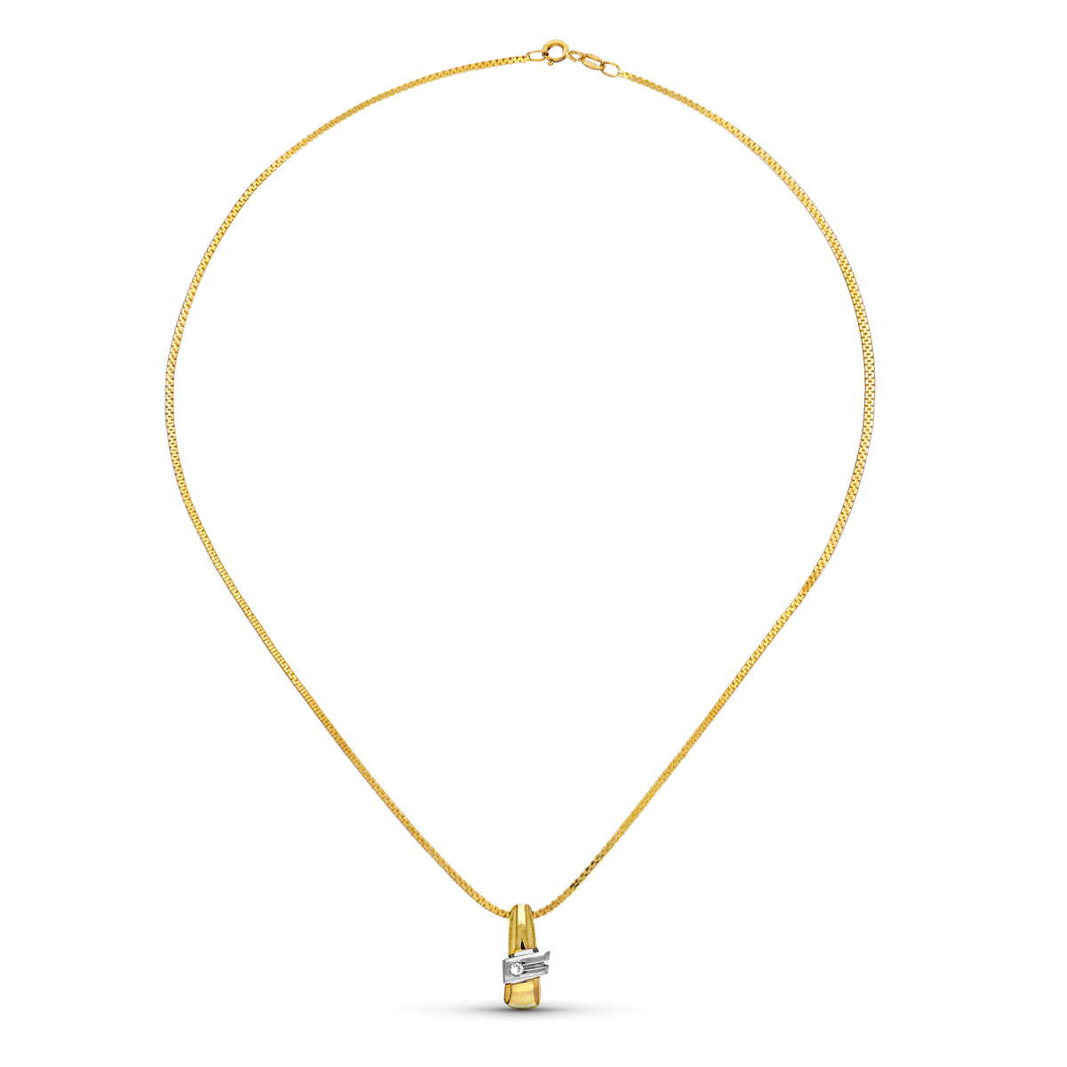 COLGANTE ORO AMARILLO BRILLANTE 16 X 7 MM. 0.04 KTES. CADENA 40