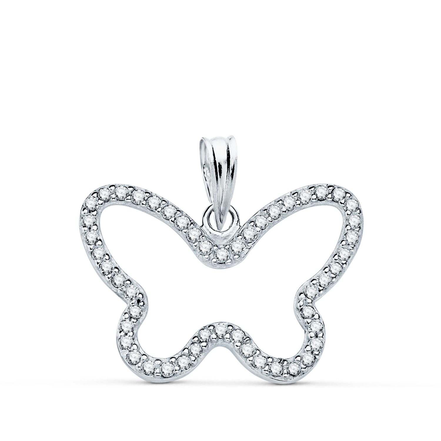 9K COLGANTE ORO BLANCO MARIPOSA CON CIRCONITAS 22X16 MM