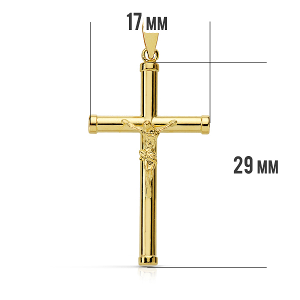 18K CRUZ ORO AMARILLO CON CRISTO HUECA TUBO 2.2 MM. 29X17 MM