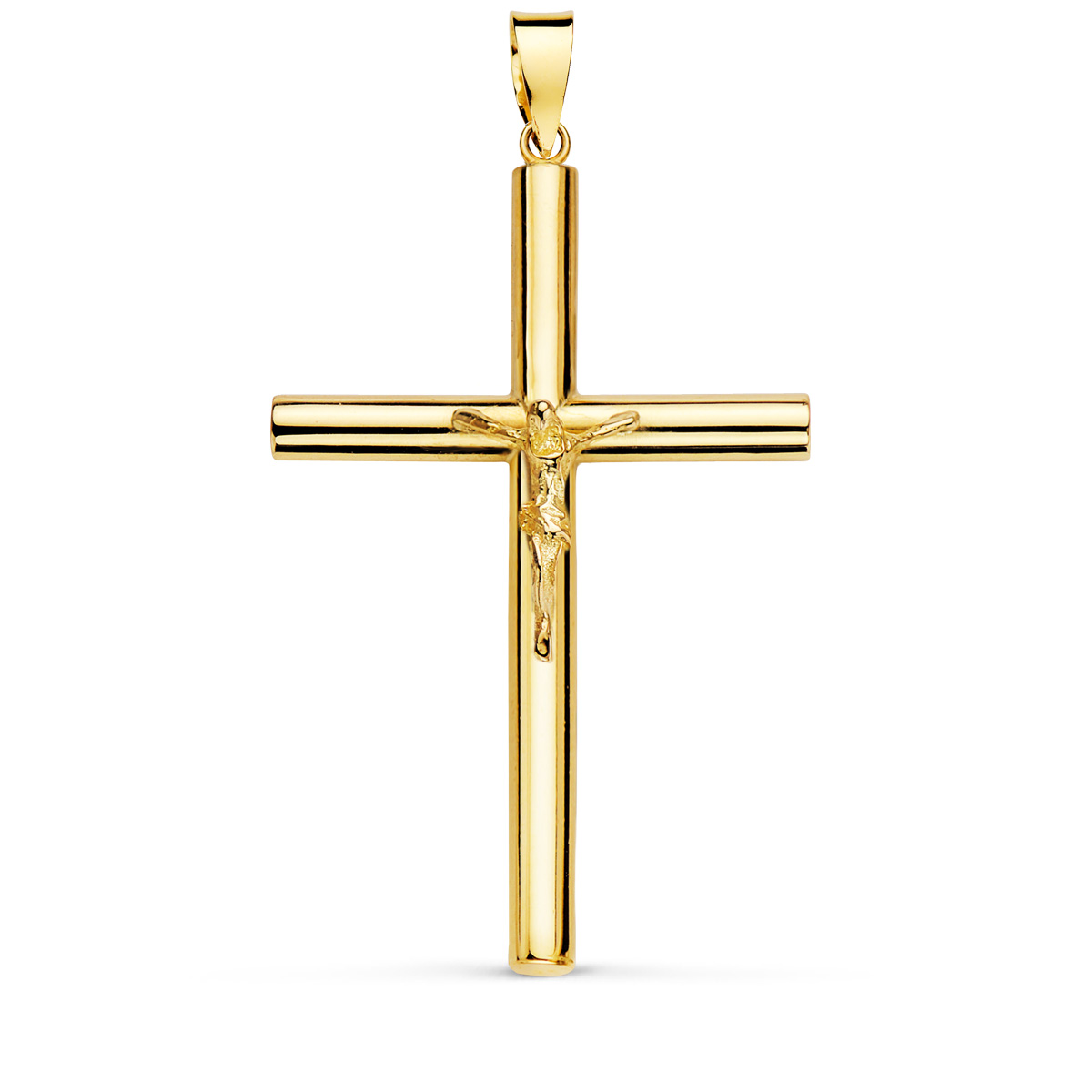 18K CRUZ ORO AMARILLO CON CRISTO TUBO HUECO. 35 X 23 X 3 MM