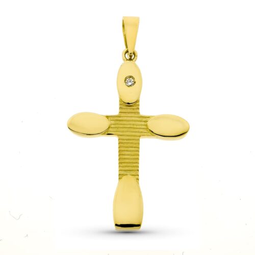 18K CRUZ DE LA VIDA ORO AMARILLO SIN CRISTO EN BRILLO 36 X 23 MM