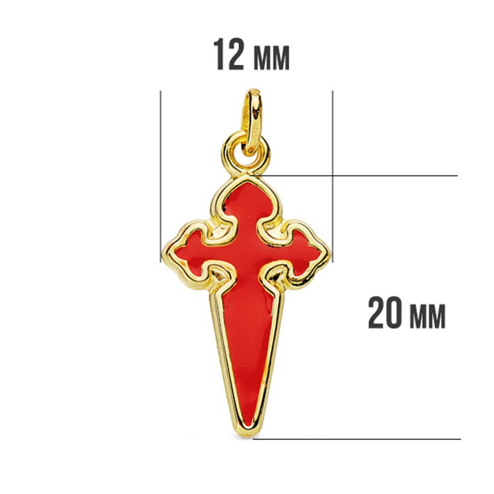 18K COLGANTE OROR AMARILLO CRUZ DE SANTIAGO ESMALTADA 23X13 MM