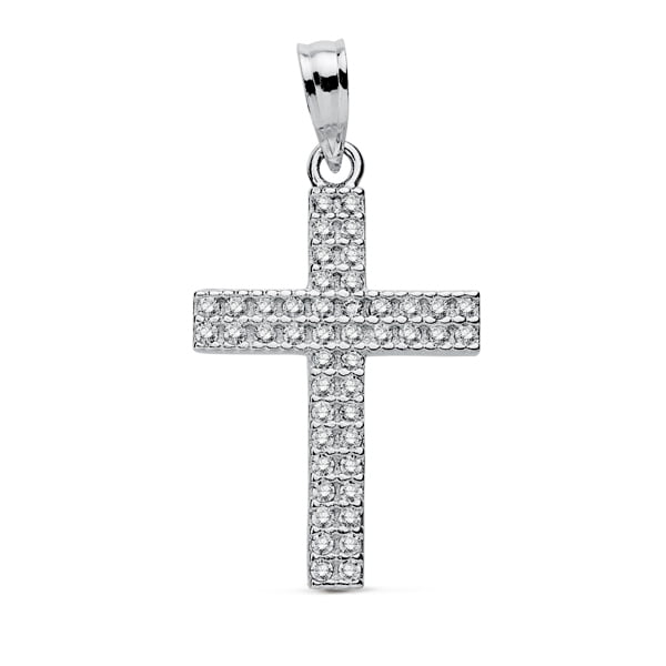 9K CRUZ ORO BLANCO CIRCONITAS 19X15 MM
