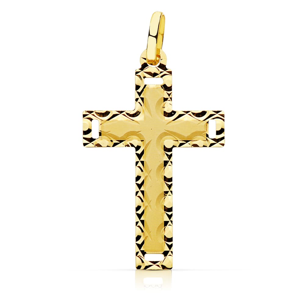 18K CRUZ SIN CRISTO TALLADA 28X17 MM