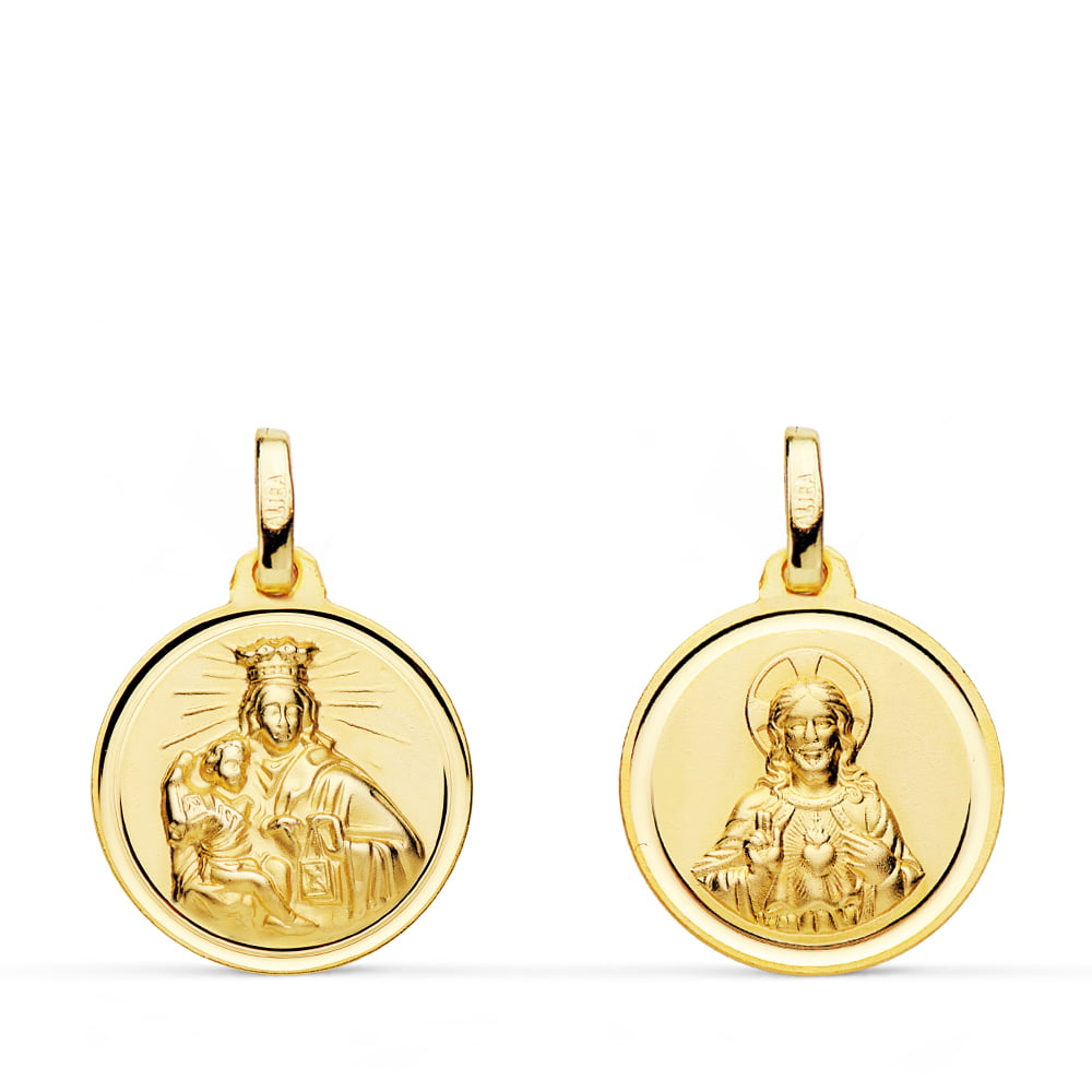 18K ESCAPULARIO VIRGEN CARMEN CORAZON JESUS 16 MM