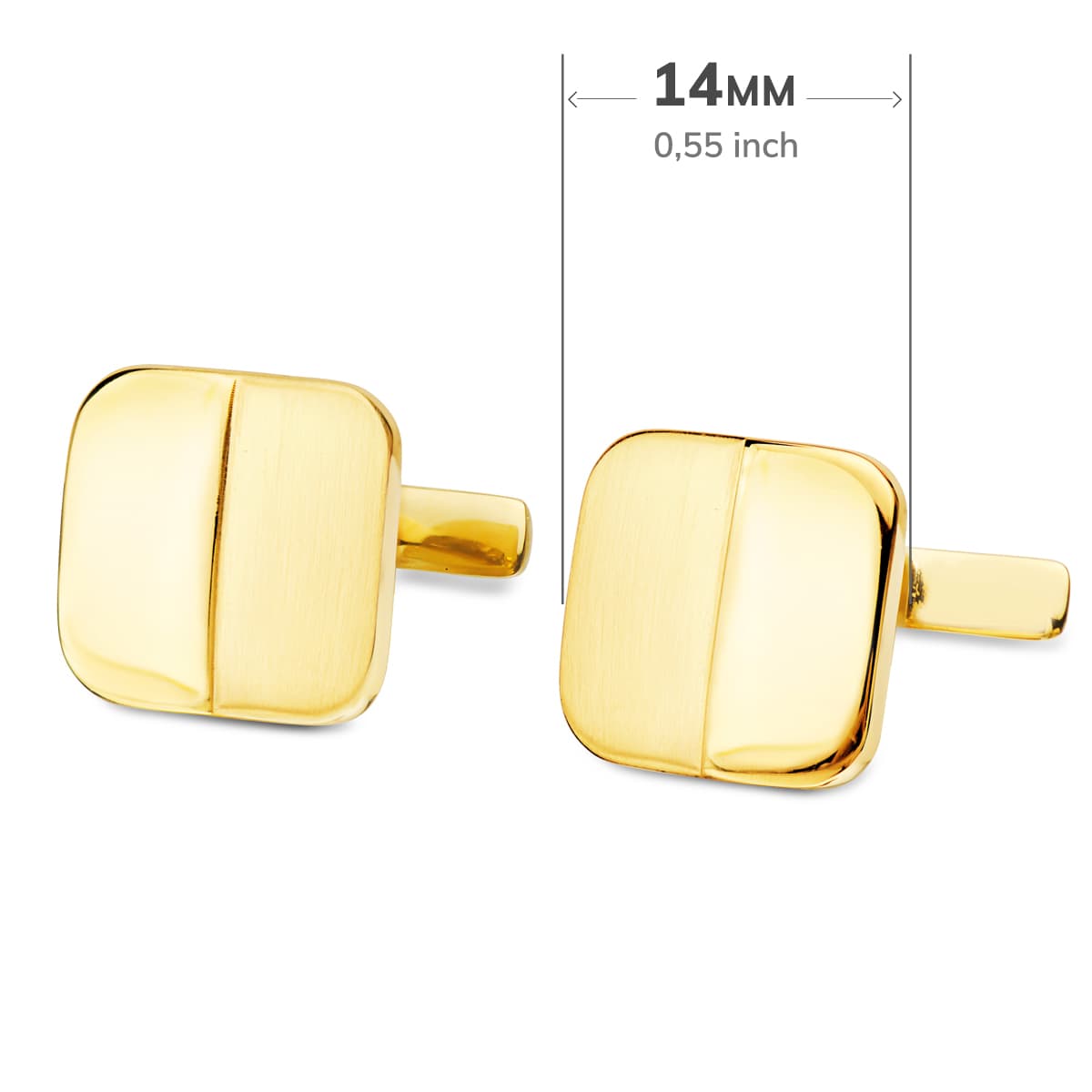 GEMELOS ORO AMARILLO CUADRADOS MATE Y BRILLO 14 X 14 MM CIERRE RÍGIDO OSCILANTE