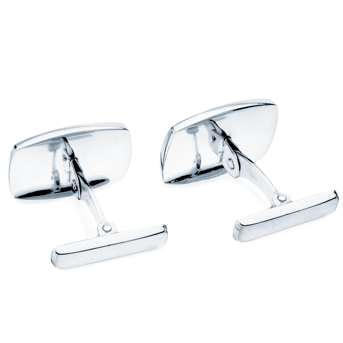 18K GEMELOS ORO BLANCO TONEL MATE Y BRILLO 17X13 MM CIERRE RIGIDO OCSILANTE