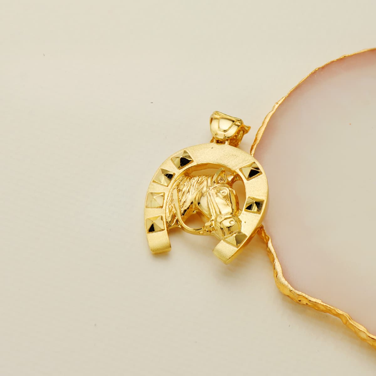18K COLGANTE ORO AMARILLO HERRADURA CON CABALLO 29X27 MM