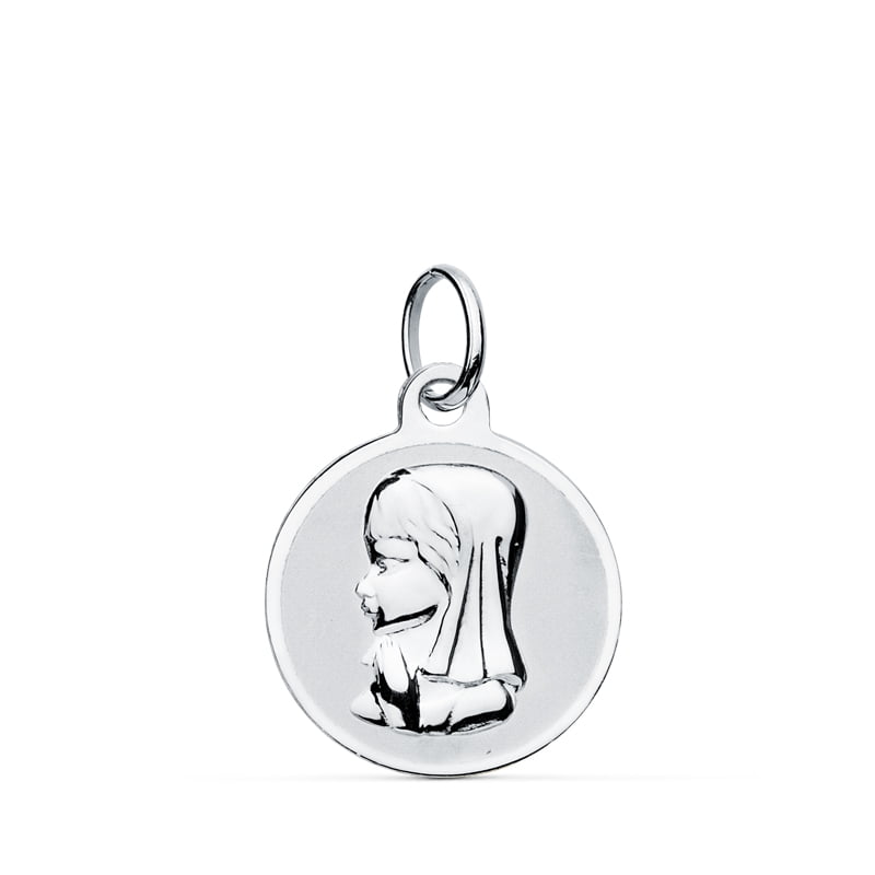 9K MEDALLA ORO BLANCO VIRGEN NIÑA 14 MM