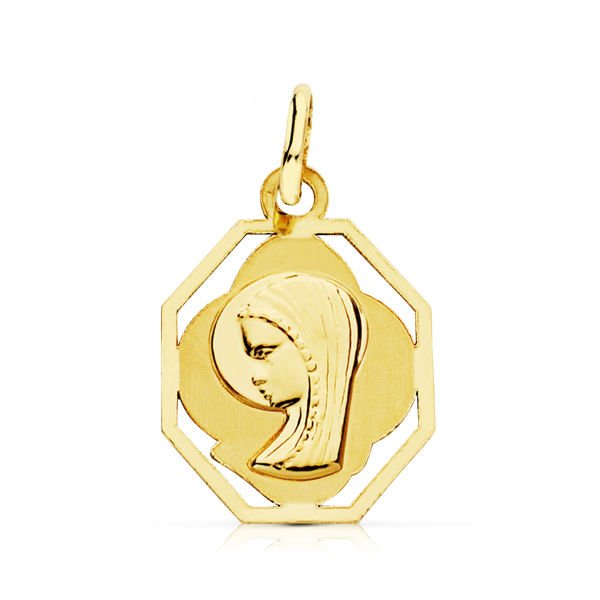 MEDALLA 9 KTES VIRGEN NIÑA CERCO. 15 X 13 MM.