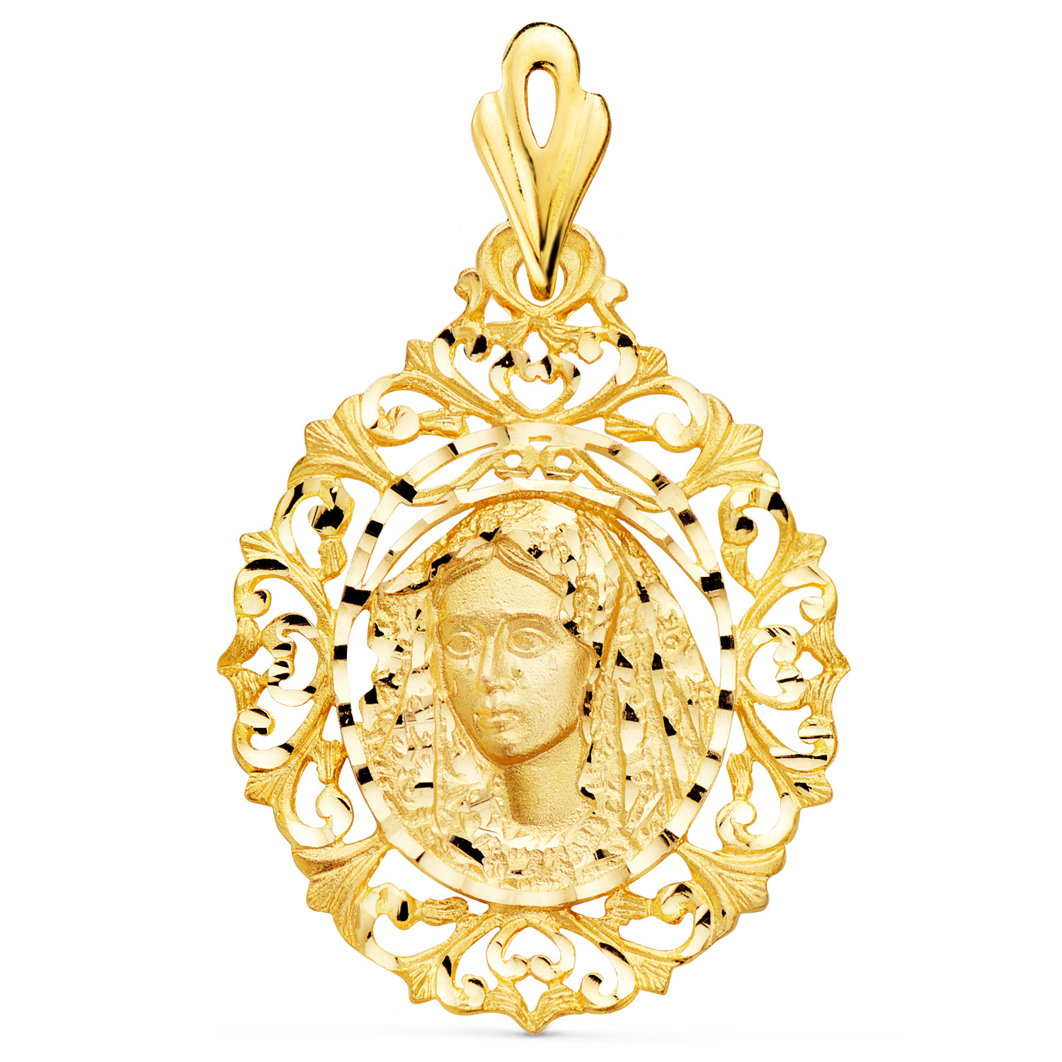 18K MEDALLA ORO AMARILLO VIRGEN MACARENA CERCO 40X31 MM