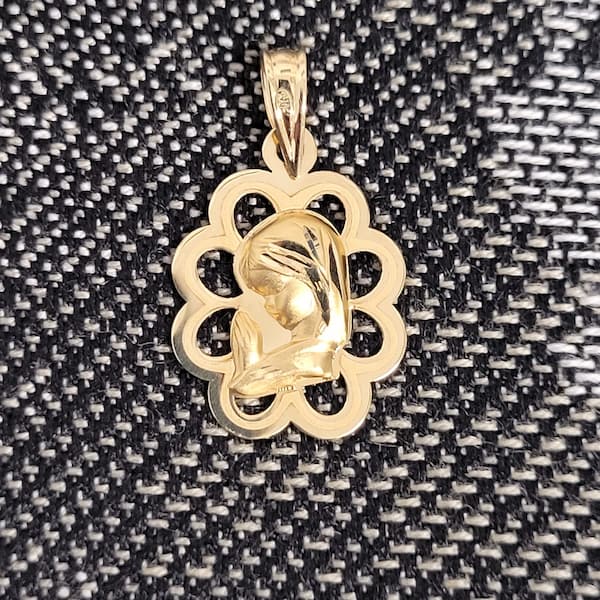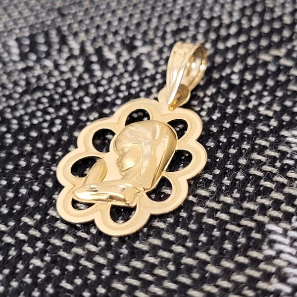 Elegante medalla infantil ideal para comuniones y recién nacidos, elaborada en oro amarillo de 18K. Su diseño calado destaca la figura de la Virgen Niña, aportando un toque delicado y simbólico. Con un peso ligero de 0.89 gramos, es perfecta como regalo exclusivo y significativo. Añade un toque de estilo a cualquier ocasión especial.