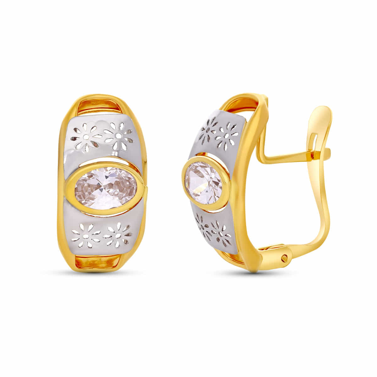 18K PENDIENTES ORO BICOLOR CIRCONITA OVAL 5X3 MM TOTAL 15X8 MM CIERRE CATALAN