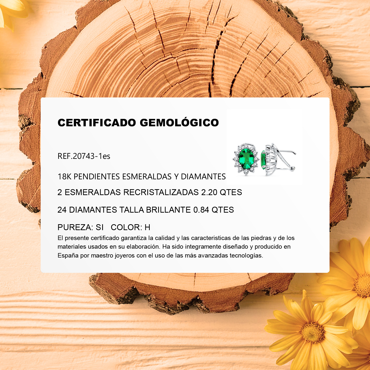 18K PENDIENTES ORO BLANCO DIAMANTES 0.84 QTS ESMERALDA 2.20 QTES