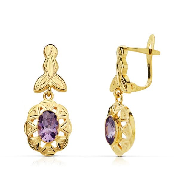 PENDIENTES CUBANAS AMATISTA 23 X 10 MM.