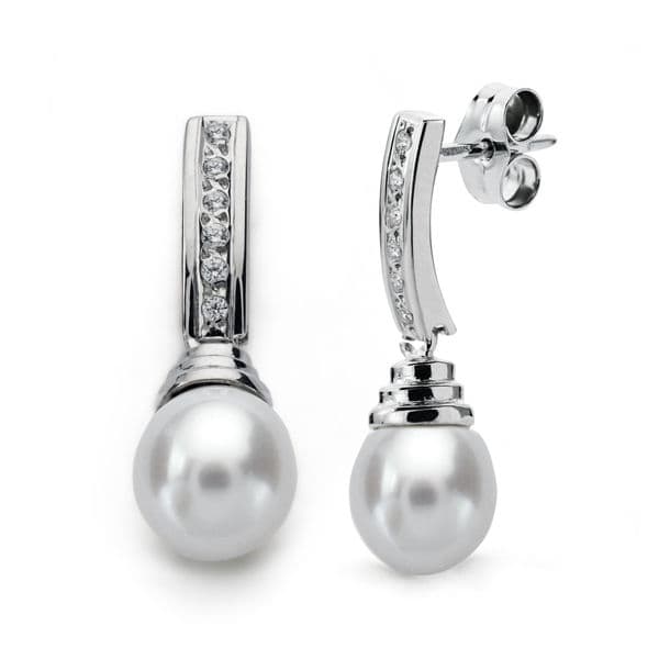 18K PENDIENTES ORO BLANCO PERLA 25X8 MM