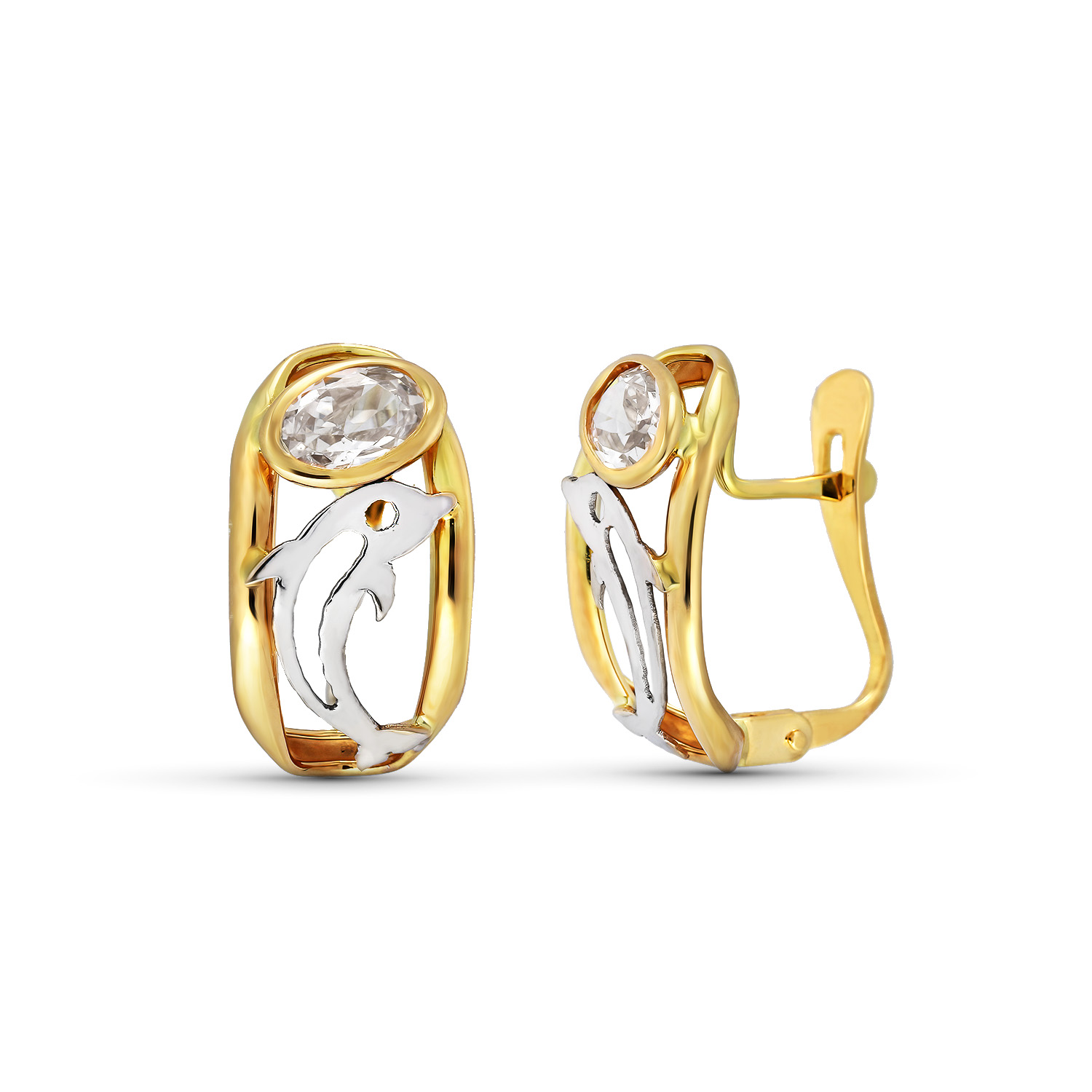 18K PENDIENTES ORO AMARILLO CIRCONITA Y DELFIN 15X8 MM