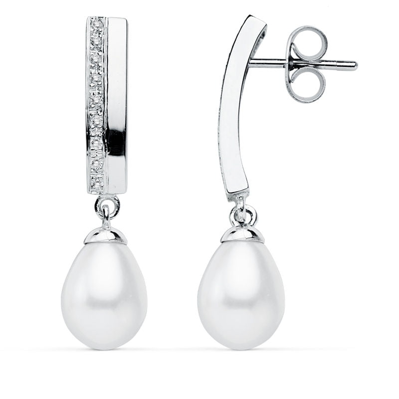 PENDIENTES ORO BLANCO 9 KTES PERLA. 30 X 7 MM.