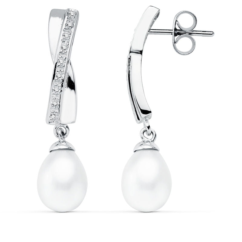 PENDIENTES ORO BLANCO 9 KTES PERLA. 32 X 7 MM.