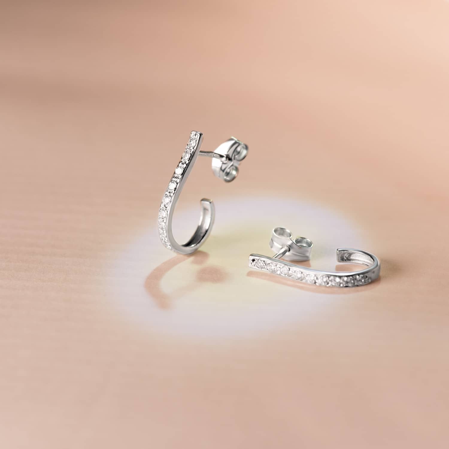 PENDIENTES ORO BLANCO CIRCONITAS. 18 X 2 MM.