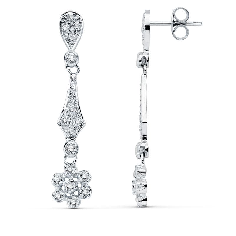 18K PENDIENTES ORO BLANCO CIRCONITAS 37X7 MM