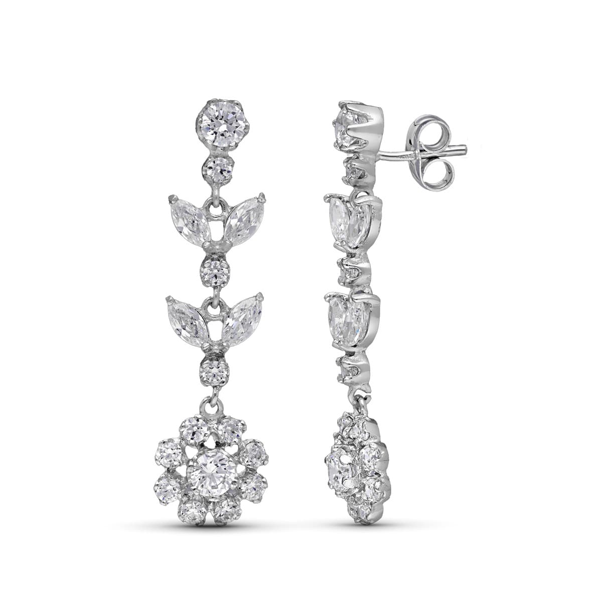 18K PENDIENTES ORO BLANCO LARGOS CIRCONITA 35X10 MM PRESION