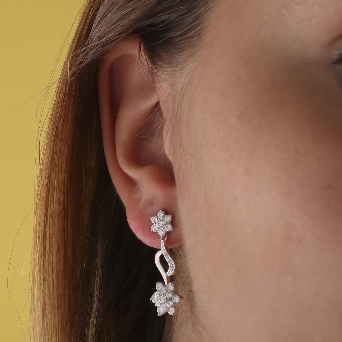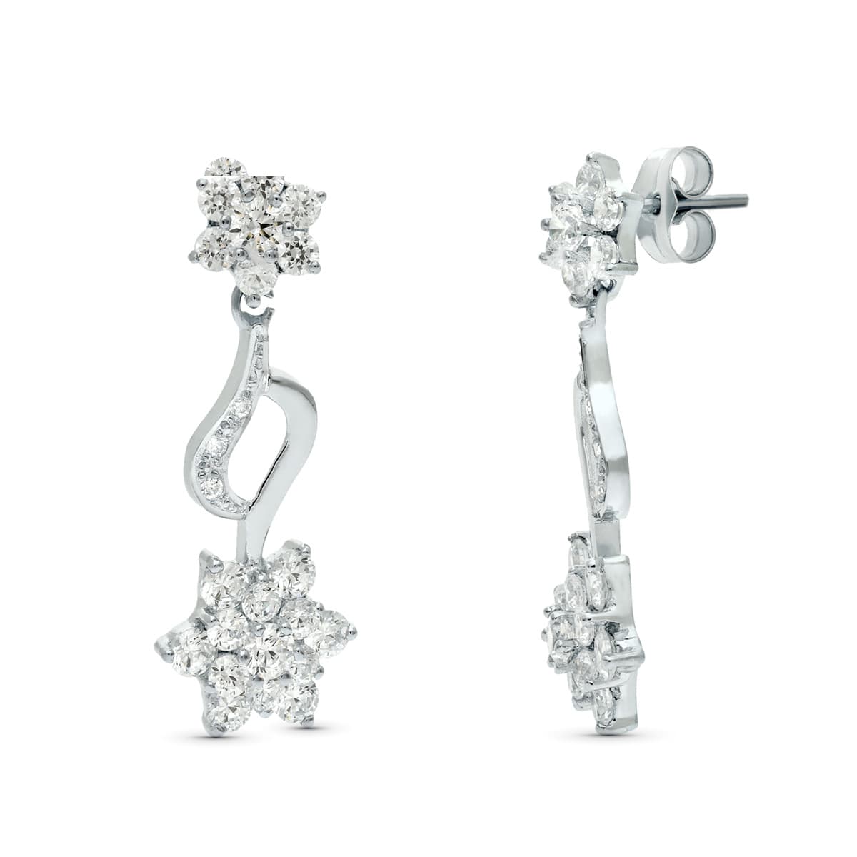 18K PENDIENTES ORO BLANCO JUEGO NOVIA PIÑA CIRCONITAS 30X11 MM PRESION