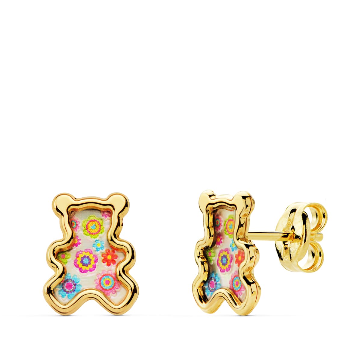 18K PENDIENTES OSOS NACAR COLORES. 8X6.5 MM