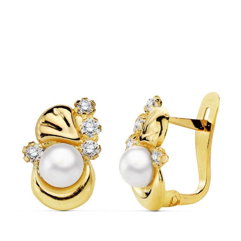 18K PENDIENTES PERLA Y CIRCONITAS 12X8 MM