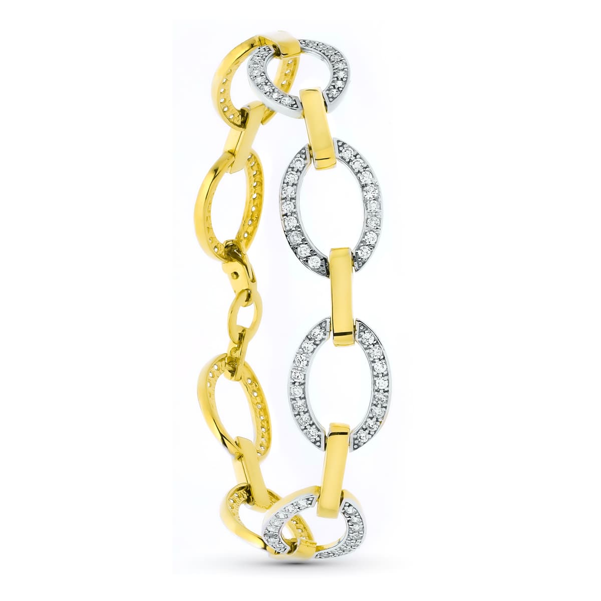 18K PULSERA ORO BICOLOR ESLABONES CIRCULOS Y CIRCONITAS