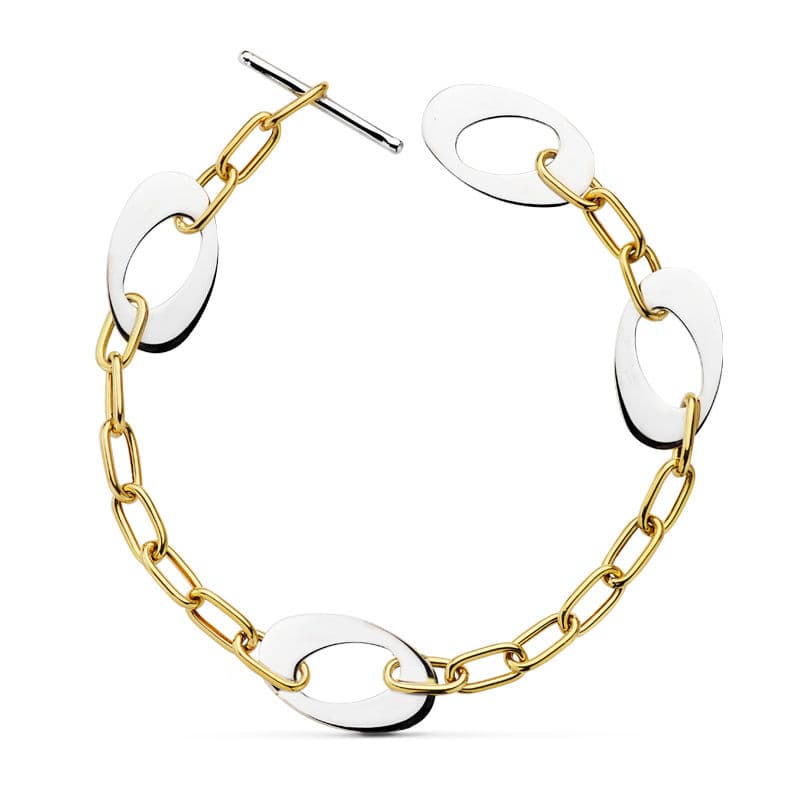 18K PULSERA BICOLOR MOTIVOS 24CM 12.50 GR