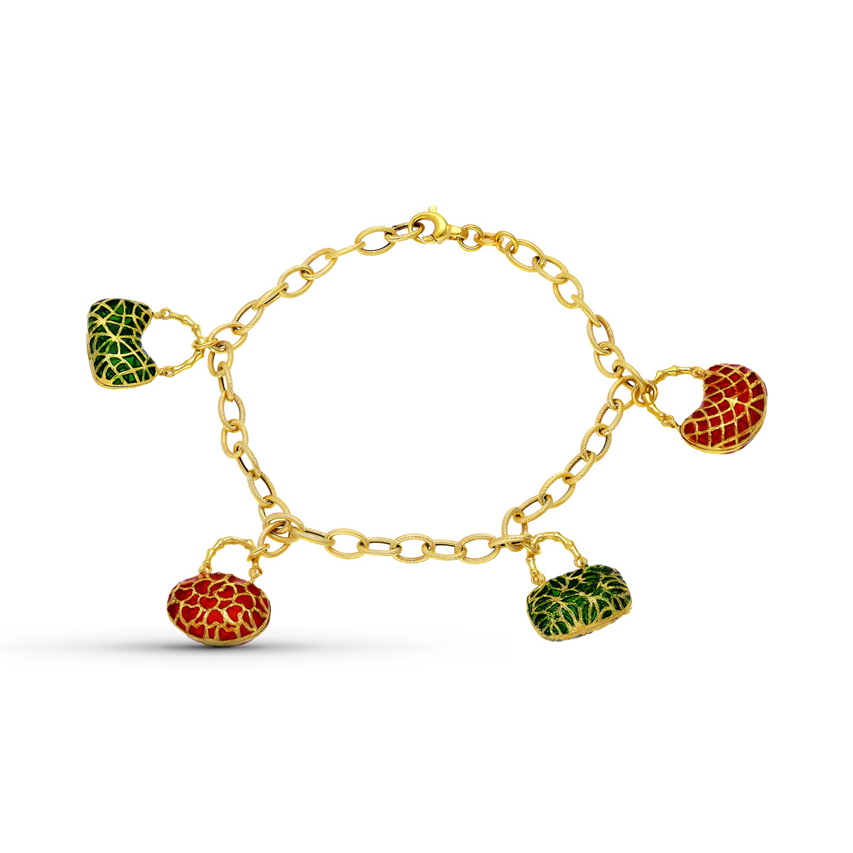 18K PULSERA ORO AMARILLO MOTIVOS BOLSOS ESMALTE