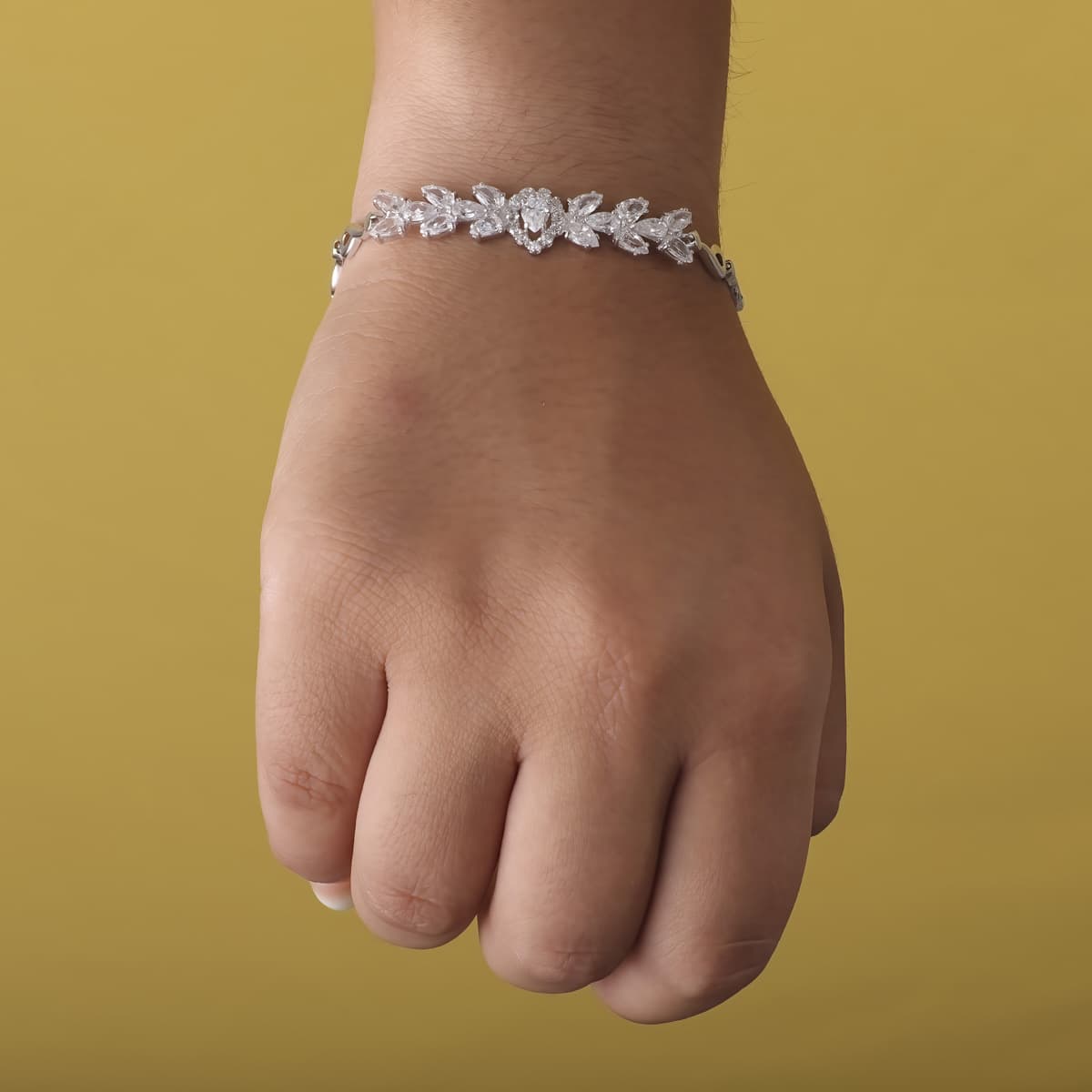 18K PULSERA ORO BLANCO JUEGO NOVIA CIRCONITAS 18.50 CM CIERRE MOSQUETON