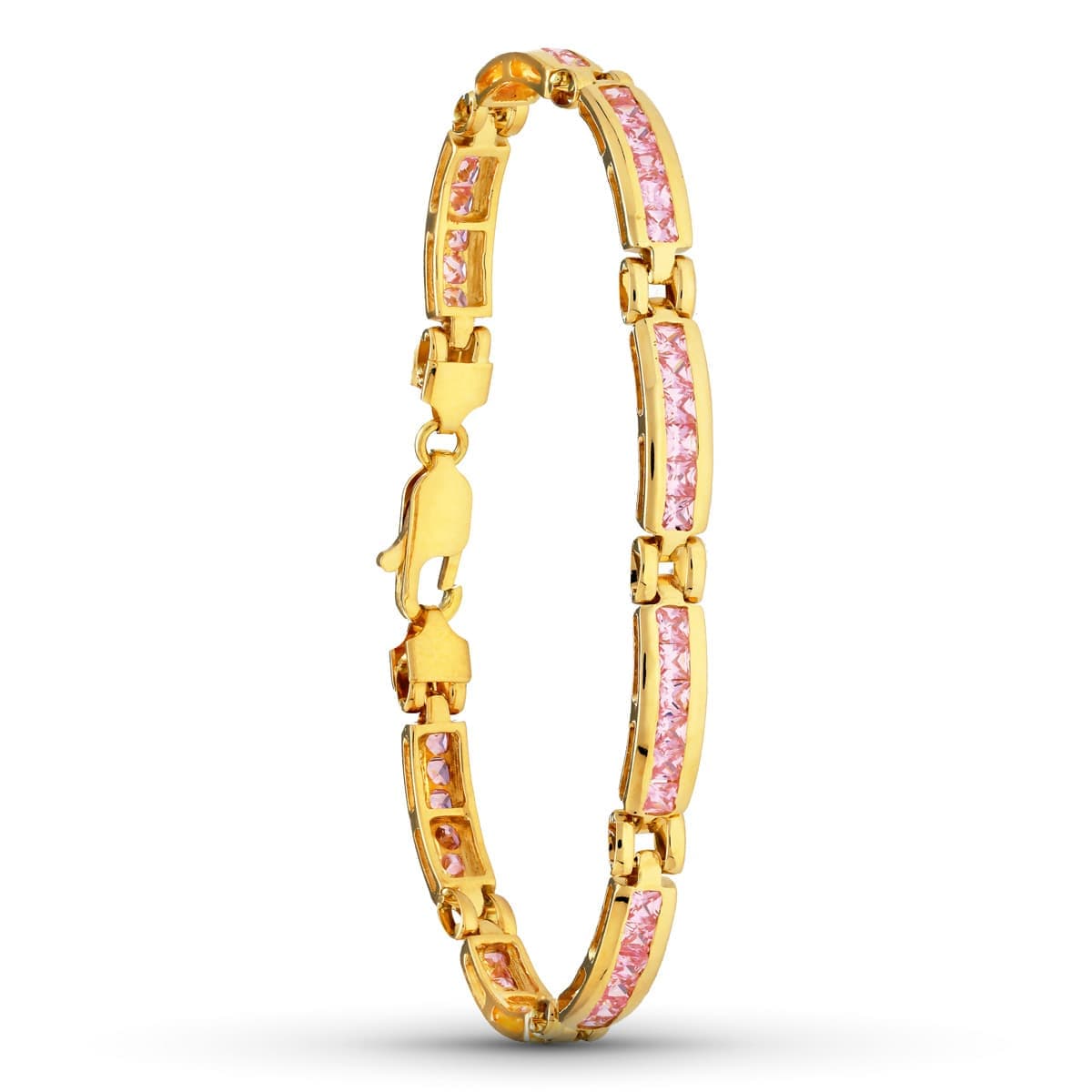 18K PULSERA ORO AMARILLO TRAMOS PIEDRAS ROSA