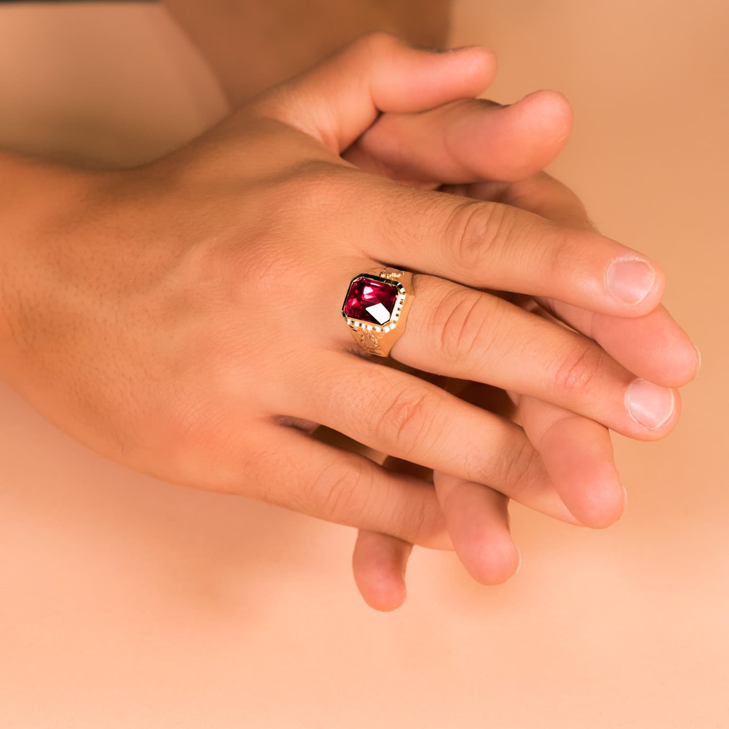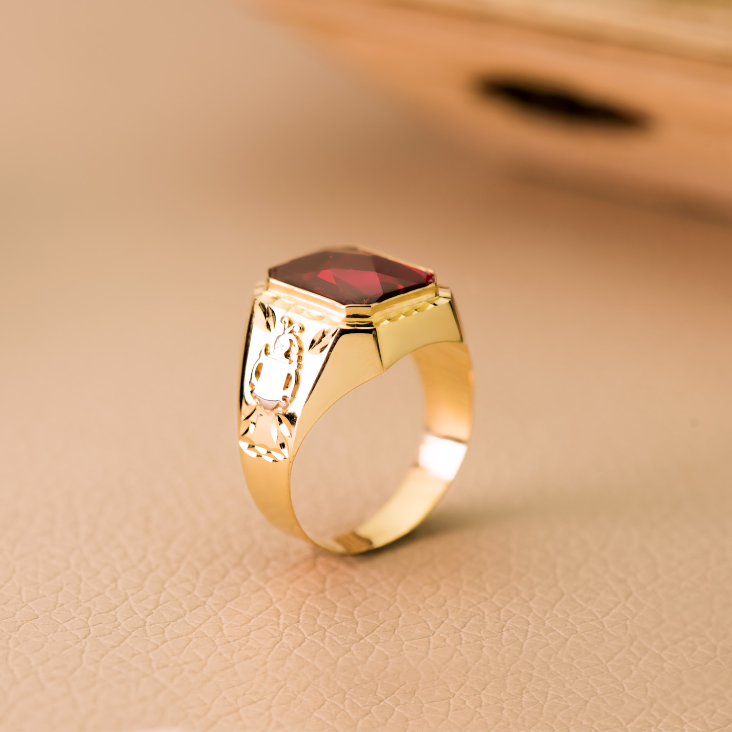 18K SELLO ORO AMARILLO CABALLERO RUBI SPINEL