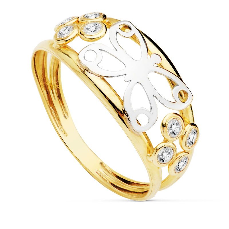 18K SORTIJA 2 HILOS BICOLOR MARIPOSA