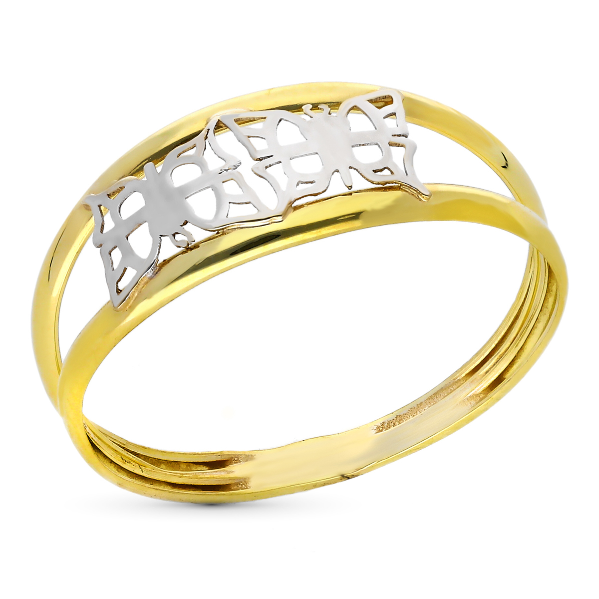 18K SORTIJA ORO BICOLOR DOS HILOS CON MARIPOSAS CALADAS. ANCHO: 7 MM