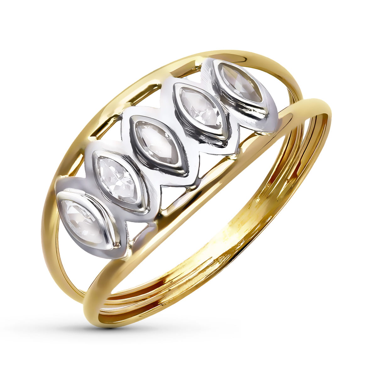 18K SORTIJA ORO BICOLOR DOBLE CUERPO CON CIRCONITAS Y MOTIVOS CALADOS. ANCHO: 7 MM
